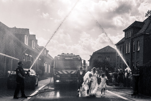 Wat ook echt supervet was, is dat de brandweer traditiegetrouw als je daar werkt, na de ceremonie met loeiende sirenes aankwam en het kersverse bruidspaar met de kids onder de sproeiers door mochten rennen!